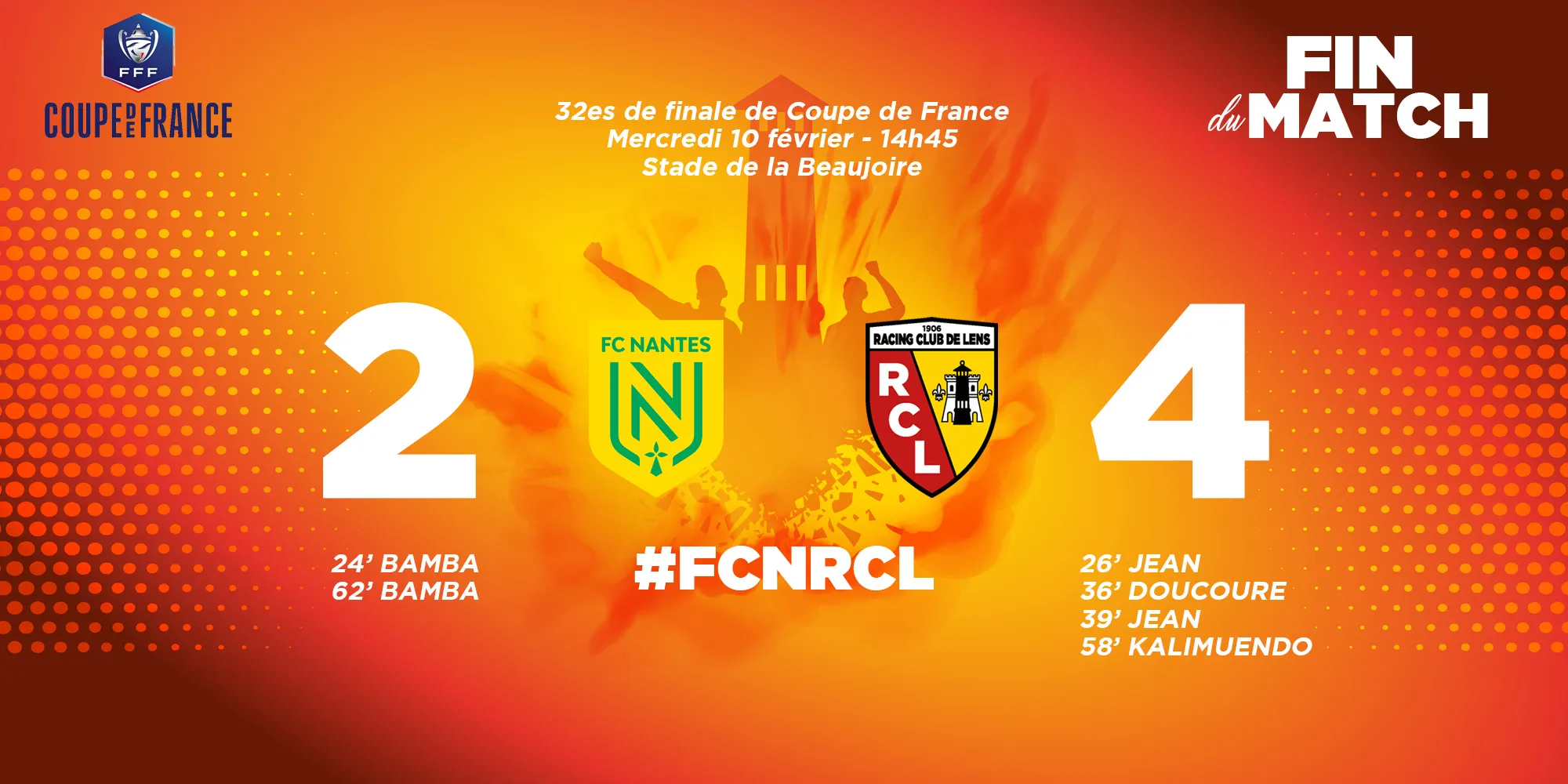 Coupe de France : Qualification du RC Lens après sa victoire à Nantes (4-2)