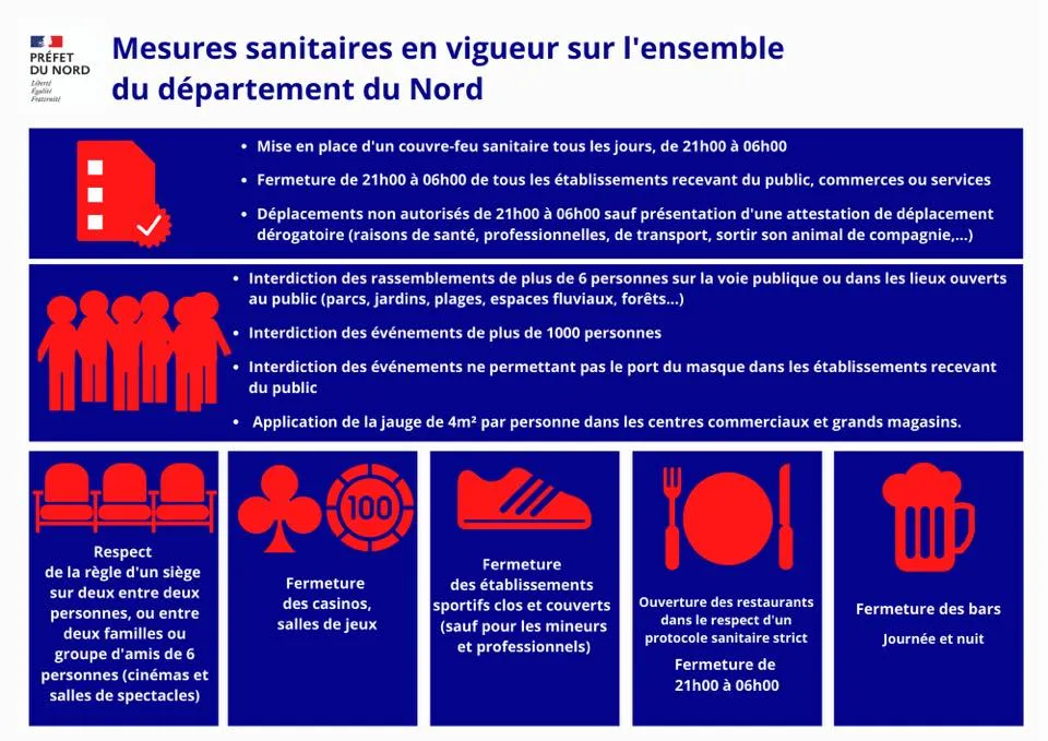 La Préfecture du Nord ferme pour minimum 3 semaines les bars, casinos, salles de jeux et salles de sport.