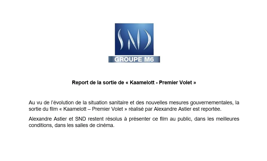 Alexandre Astier, créateur, réalisateur, musicien et acteur de Kaamelott a annoncé que le film ne sortira pas le 25 Novembre et qu'une nouvelle date de sortie sera dévoilé prochainement.