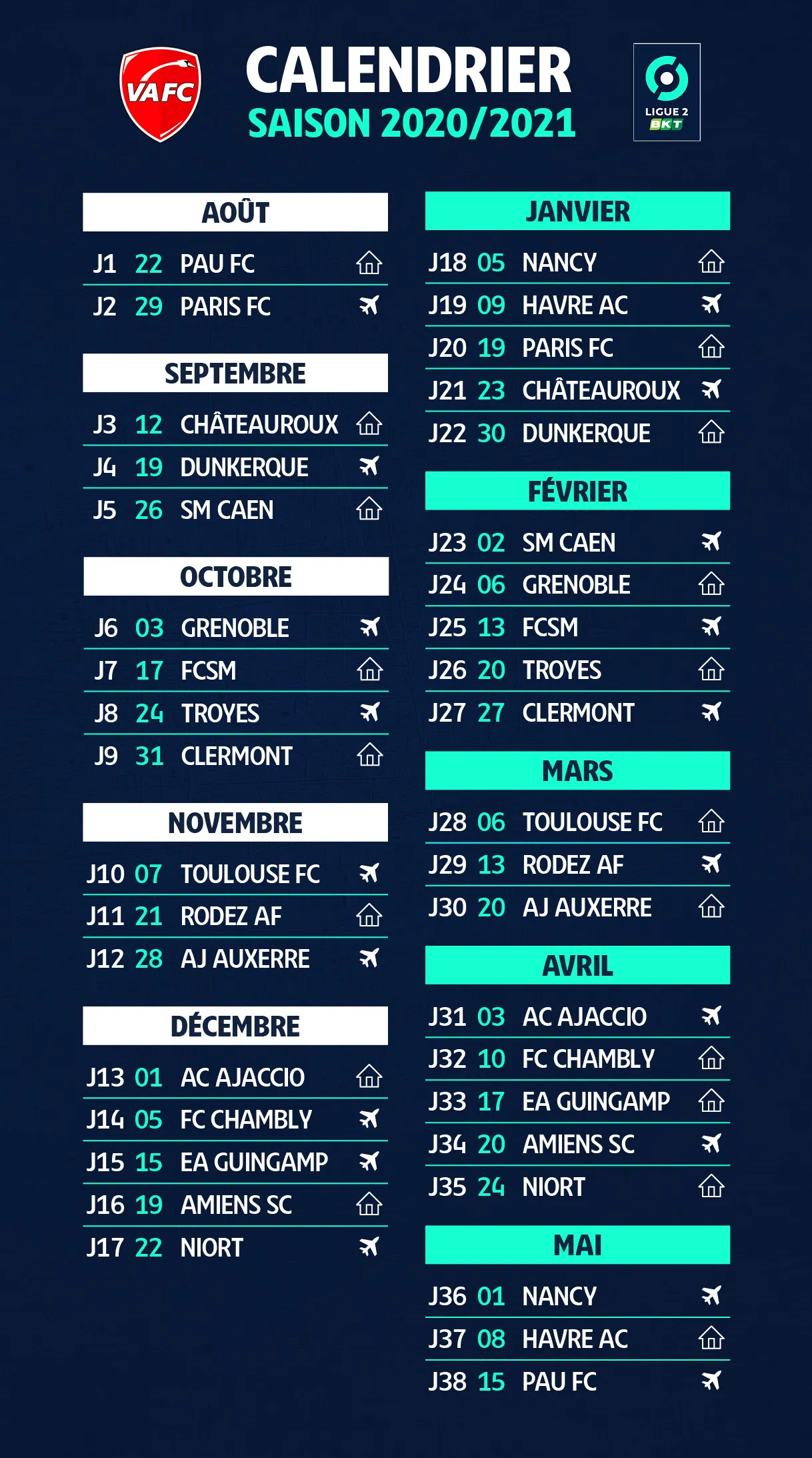 Les Valenciennois eux, recevront le promu Pau pour la 1ère journée puis irons à Charlety affronter le Paris FC.