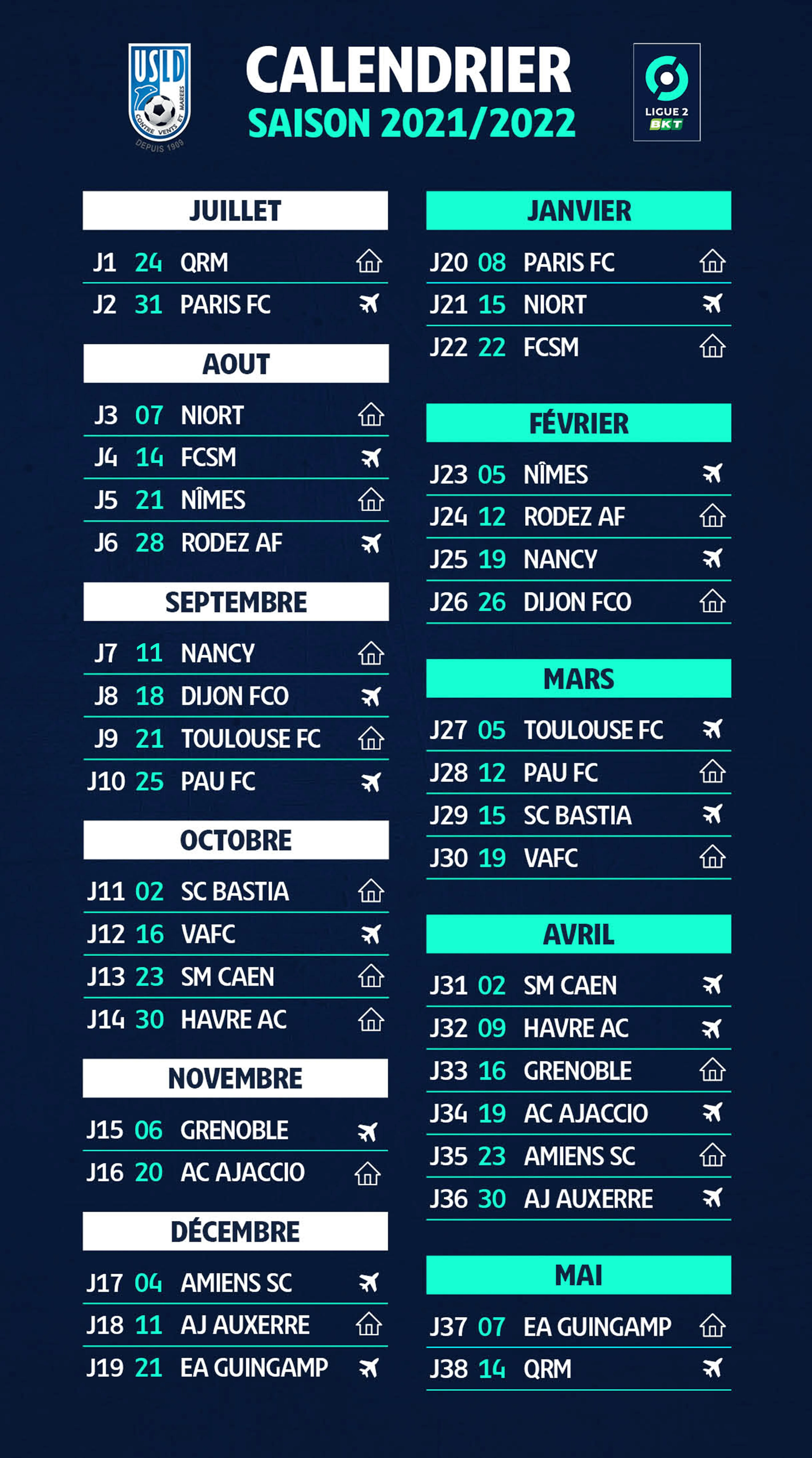 Ligue 2 : Le calendrier de l'USL Dunkerque pour la saison 2021/2022