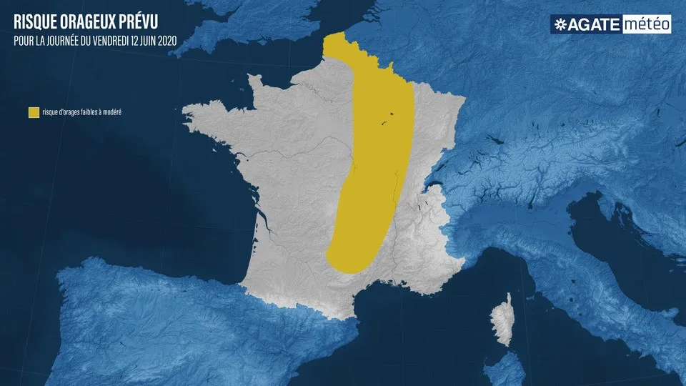 Pour ce jeudi en cours d’après-midi, l’activité orageuse devrait se concentrer sur un grand quart Nord-Est. Si l’on se réfère aux modélisations à mailles fines, les Hauts-de-France devraient être les plus exposés.