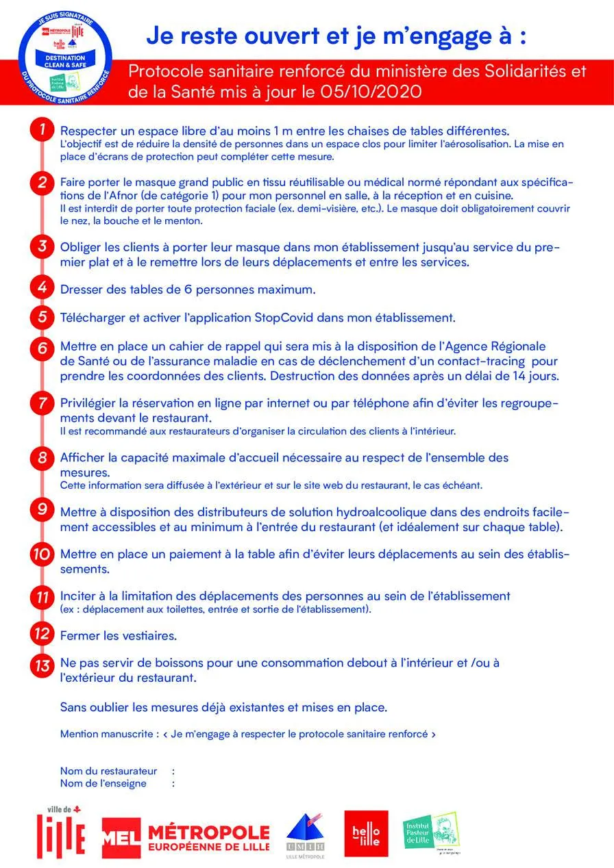 Nouveau protocole sanitaire anticipé, sous forme de charte, dans la métropole lilloise
