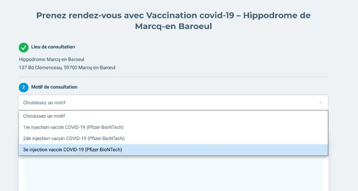 Dans certains centres qui injectent le vaccin Pfizer BioNTech, vous choisissez parmi plusieurs motifs de rdv… 1è dose, 2è dose… et même 3è dose !