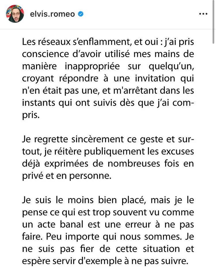 Roméo Elvis confirme l'agression sexuelle et demande pardon :