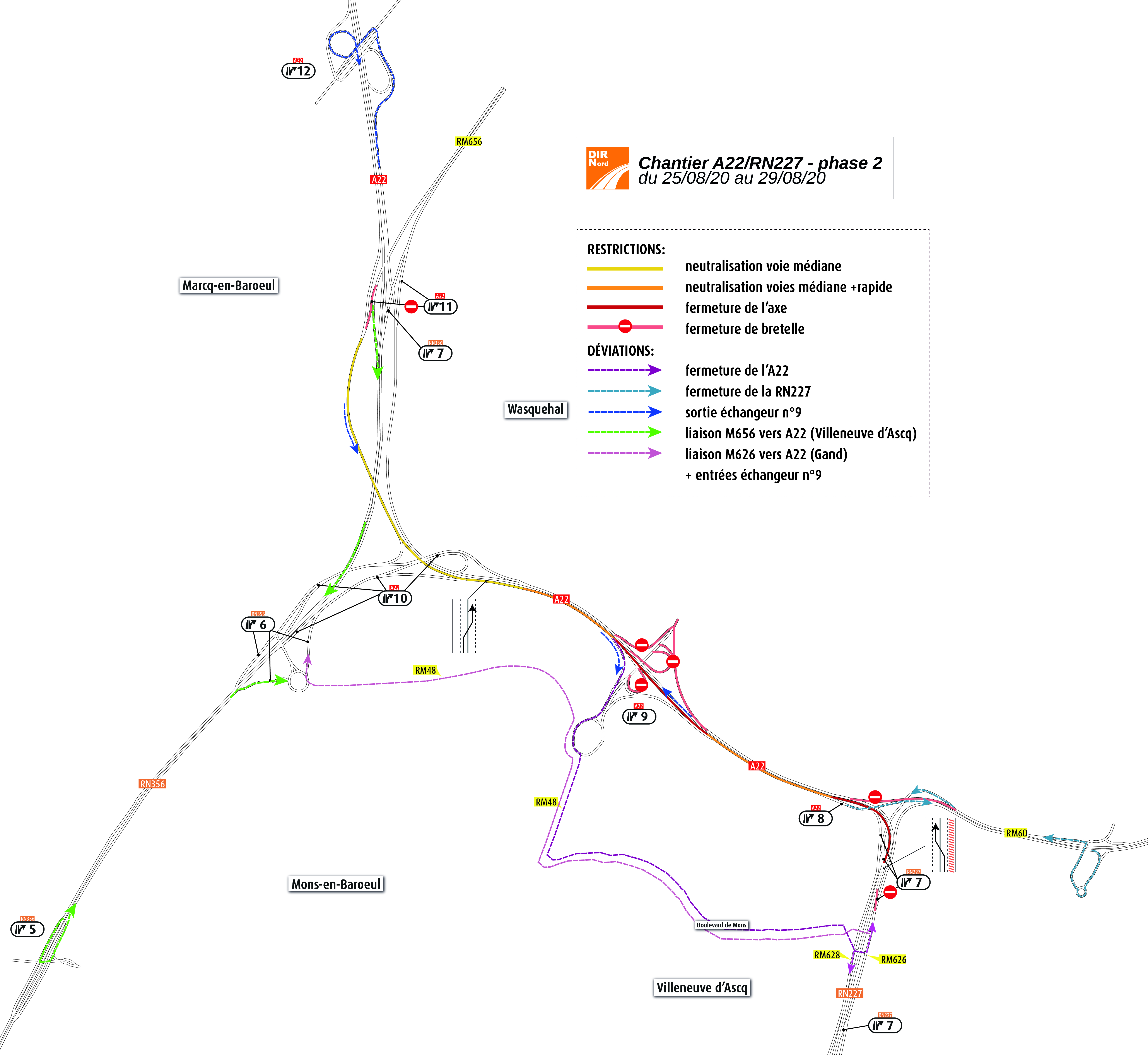 • fermeture de la bretelle de liaison M656 (Tourcoing) vers A22 (Lille)