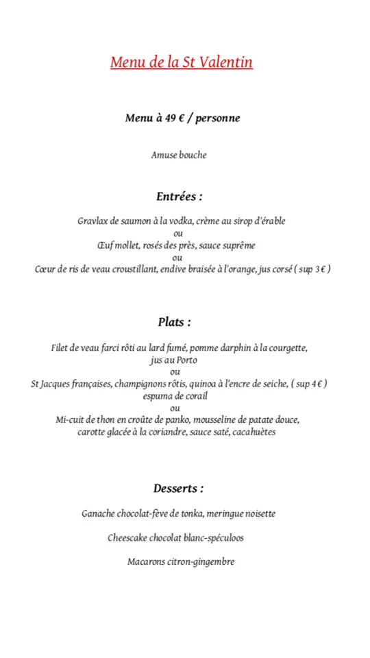 Le restaurant LE PETIT JARDIN de Villeneuve d'Ascq vous offre un diner pour 2 le soir de la St Valentin